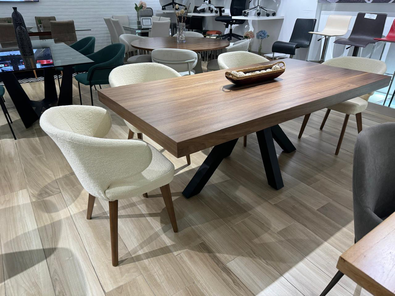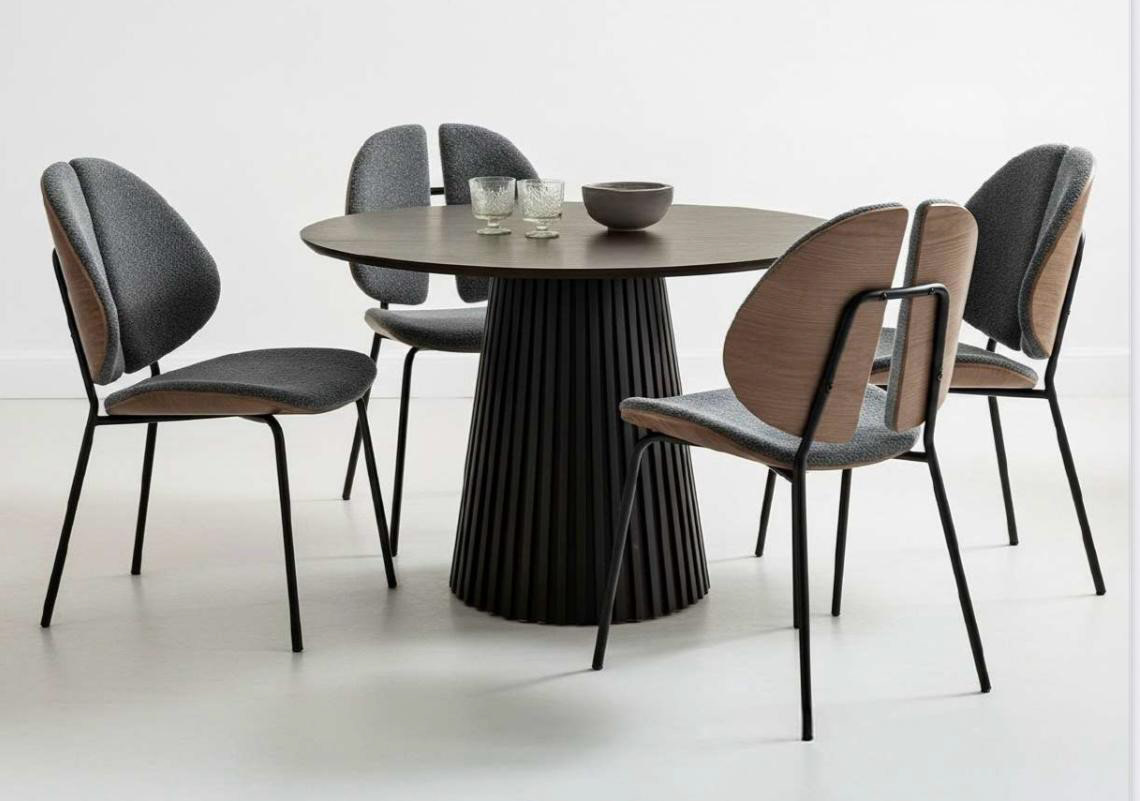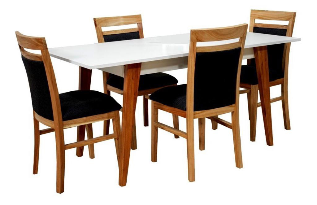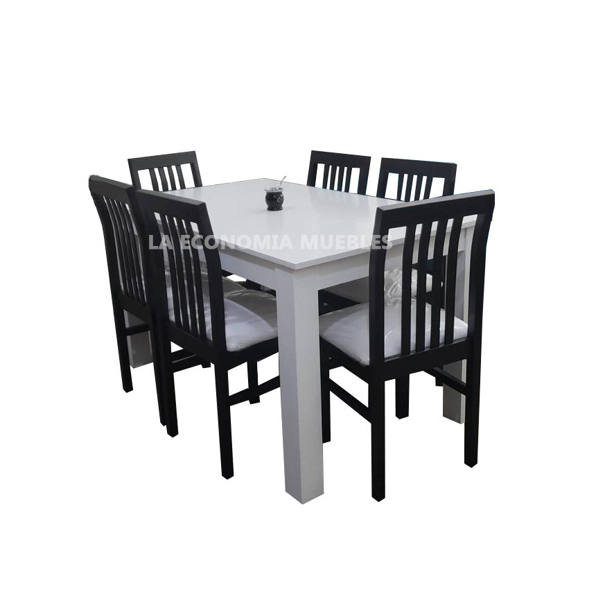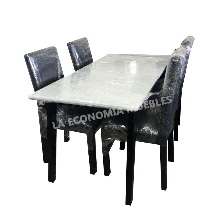 Mesa paraíso con base maciza ( tapa blanca o negra ) base en madera paraíso macizo ( 4 patas ) sillas linea actual anatómicas con asiento tapizado ( en eco cuero o telas )