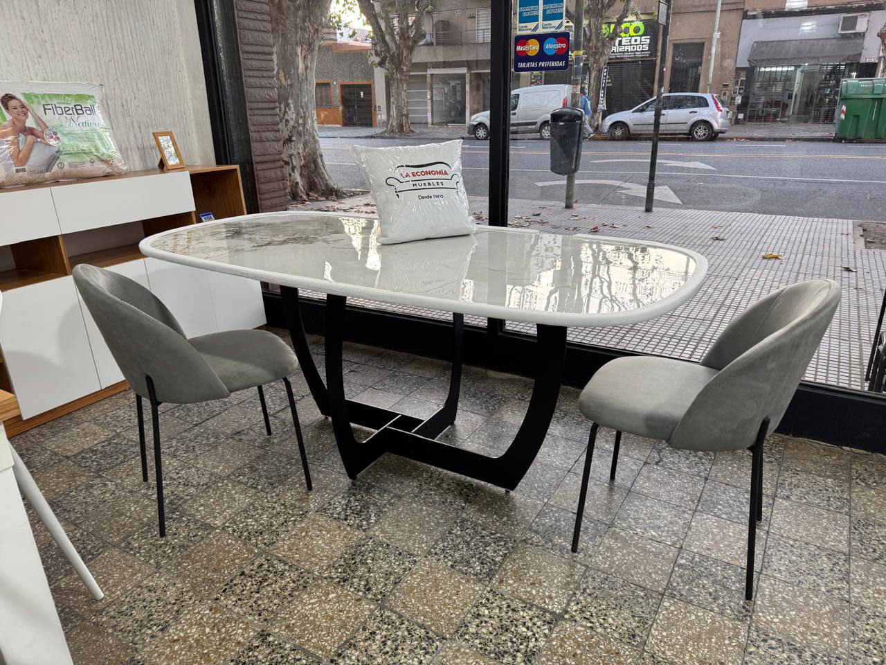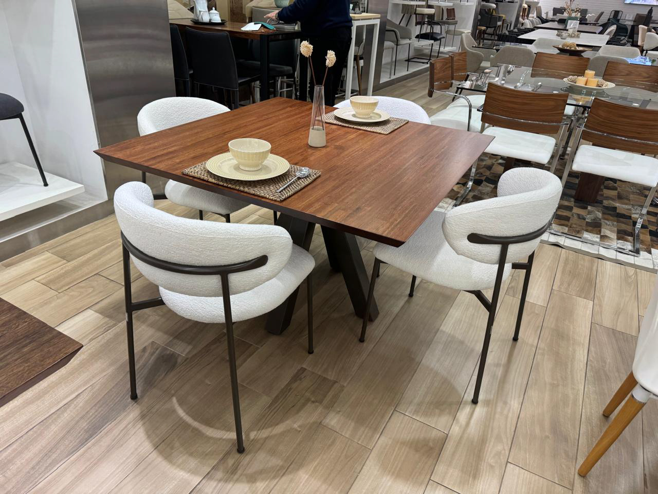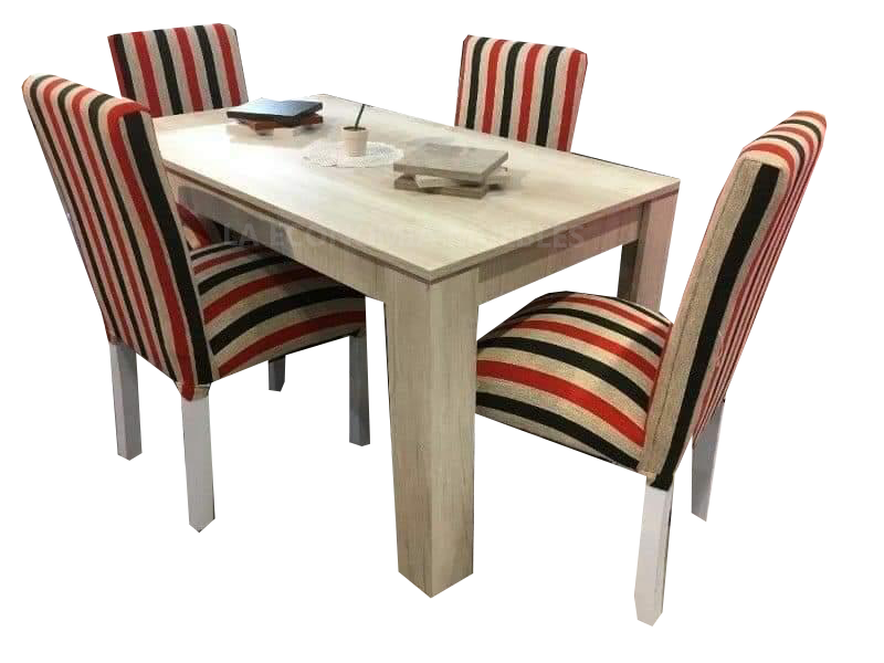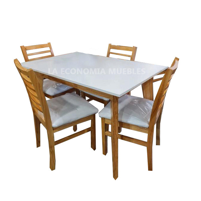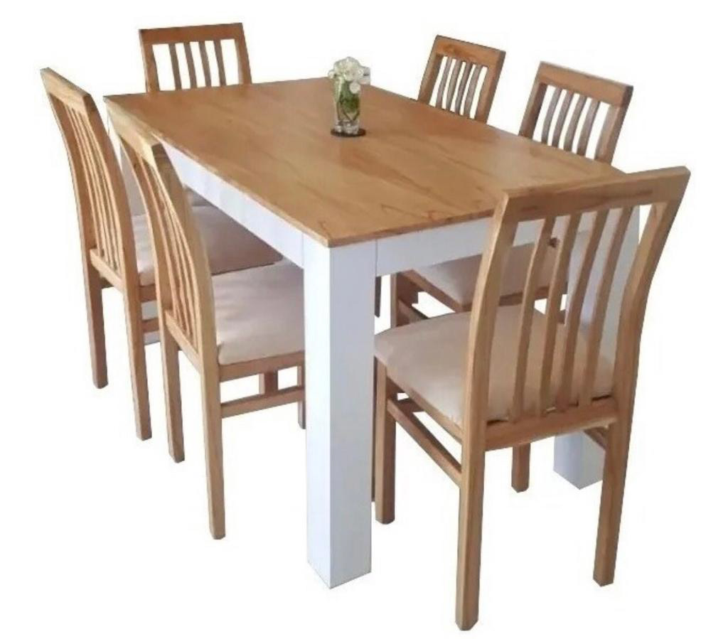 Mesa Paraíso combinada con laca poliuretano . Sillas macizas en paraíso. Respaldo anatómico súper confortable. Asiento tapizado ( telas o cuerina a elección )