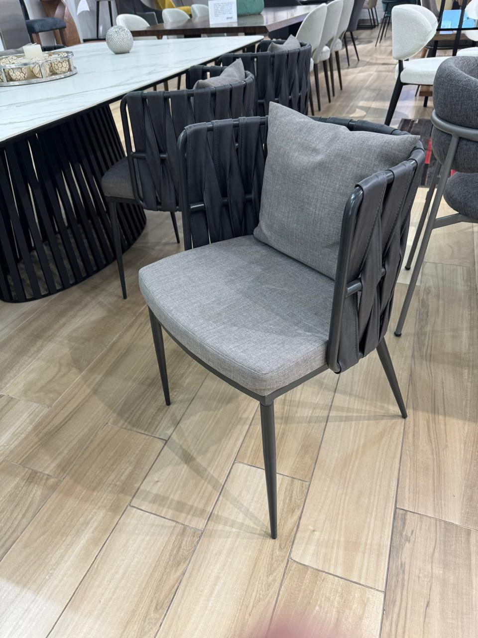 Silla en paraíso con tapizado en chenille con franjas (colores a elección).
