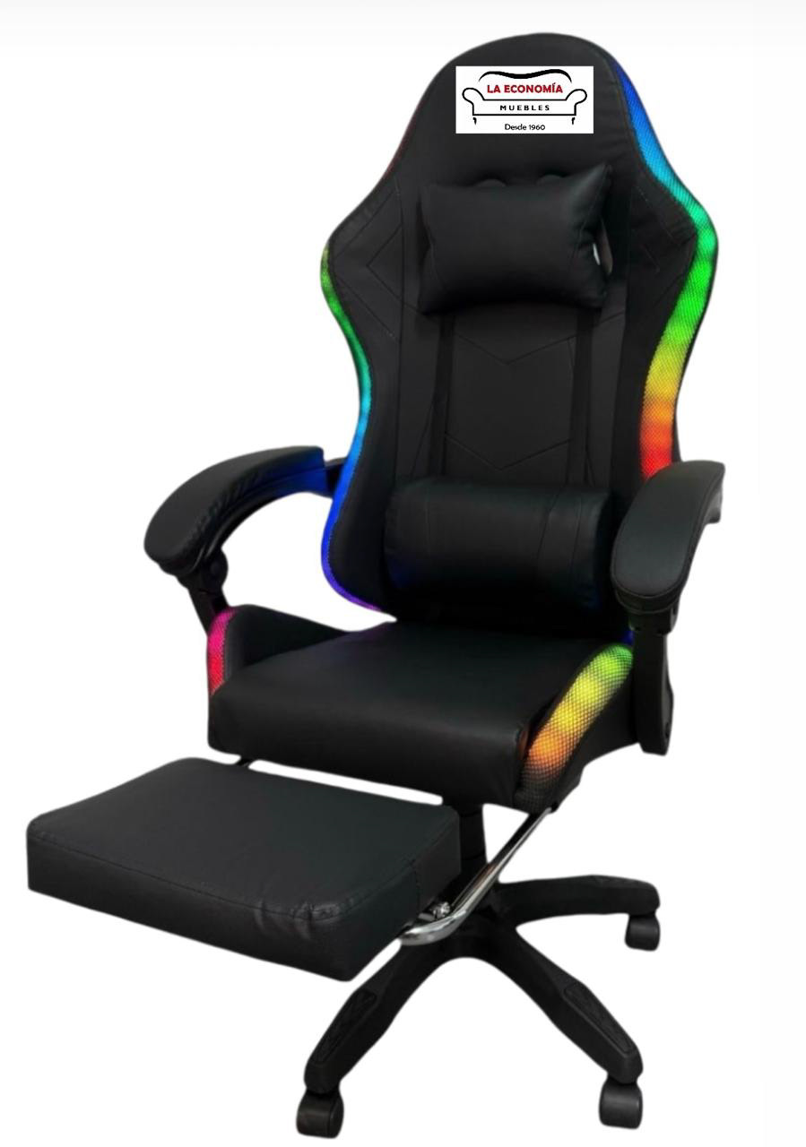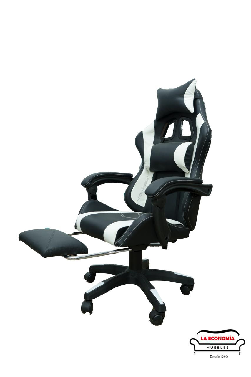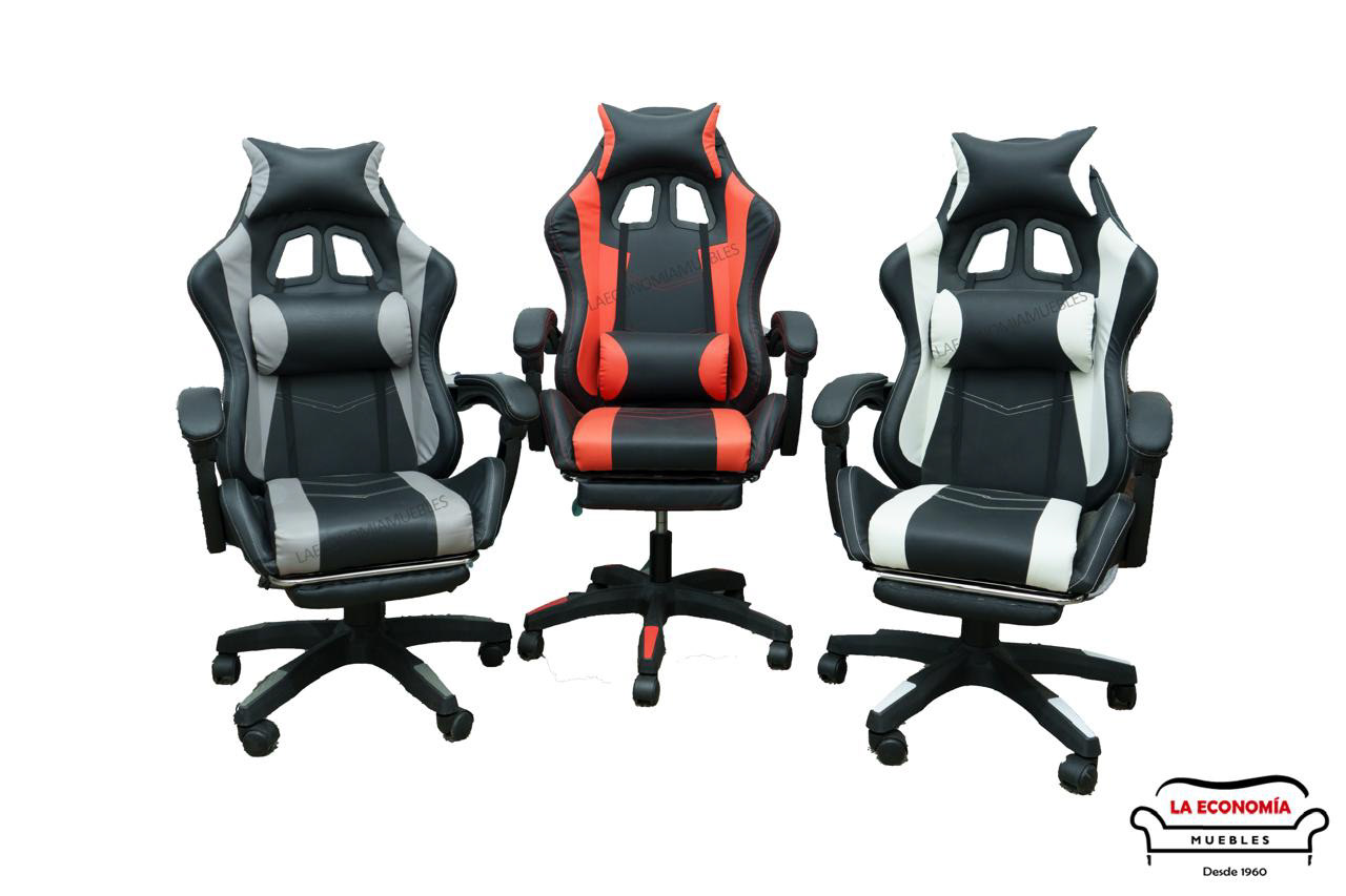 Silla Gamer giratoria neumática y basculante (reclinable), base negra, tapizado según stock.